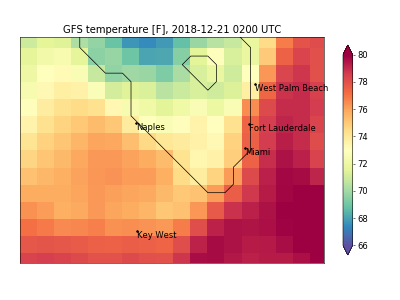 Because our system automatically scales the resolution with the region size to achieve consistent compute times and cost, you can control the resolution by changing the forecast region size.